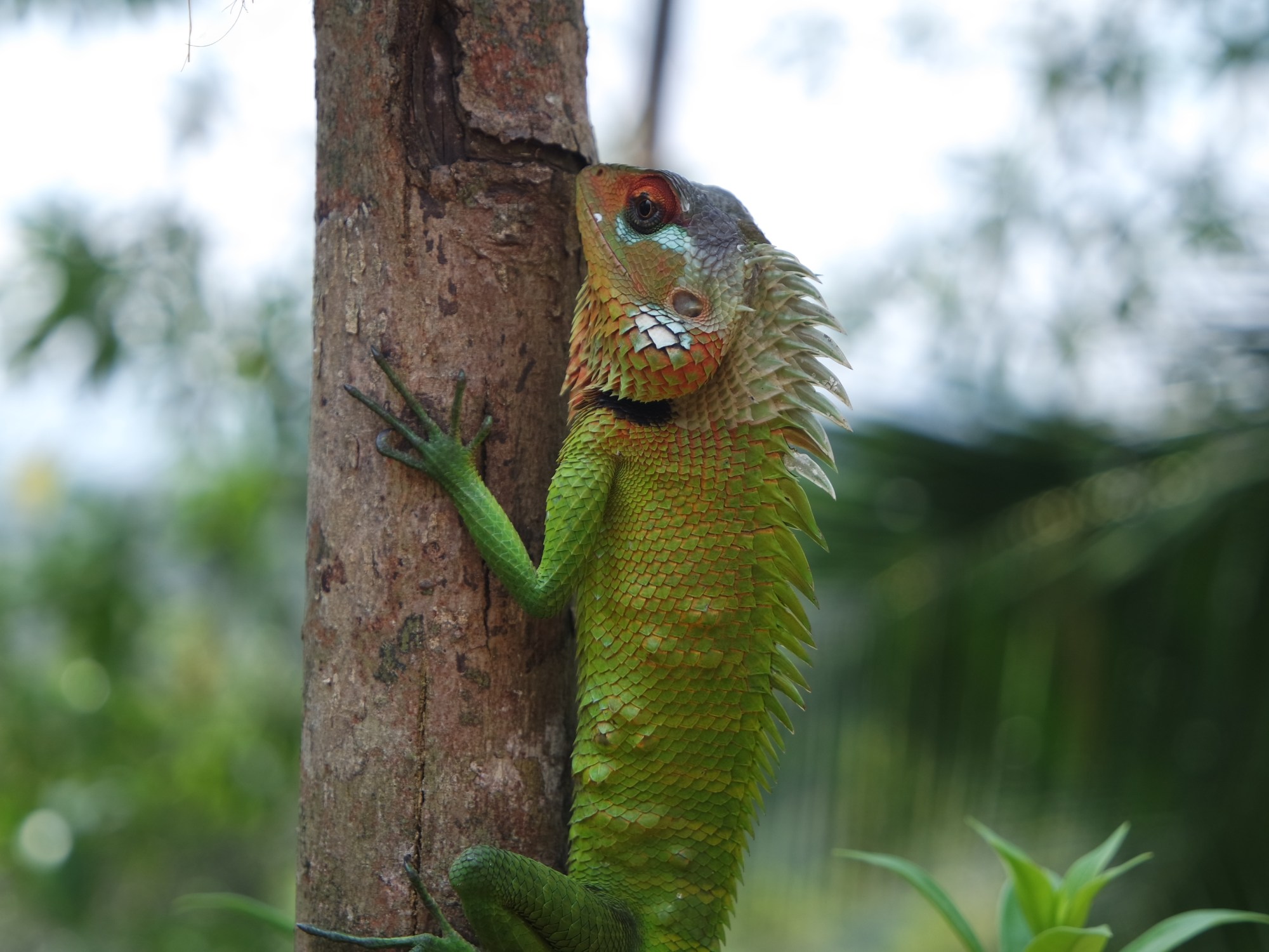 Jap…dieses Foto hab ich selbst gemacht und ja es ist ein frei rumlaufendes Tier im Gebüsch, nix Zoo oder so! 🙂 Um genau zu sein eine Agame, nicht zu verwechseln mit einem Chamäleon – kann aber genauso auch seine Farbe ändern.